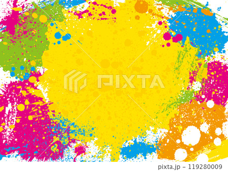 Colorful Brush Splash Background. Vibrant Grunge Background with Halftone Style. Vector Illustration