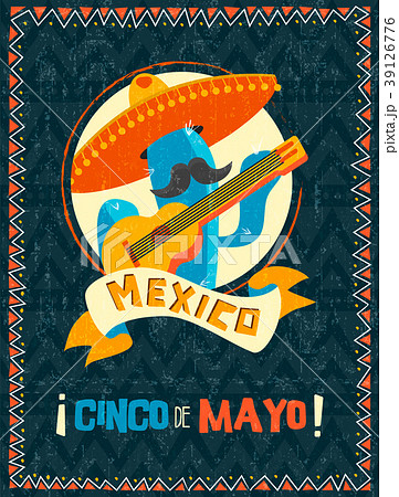 Mexican sombrero, guitar, maracas. Cinco de Mayo