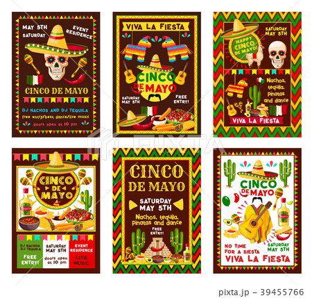 Holiday Banner with Set Mexican Colorful Symbols for Cinco de Mayo. Advertising Template