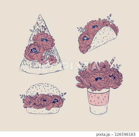 Trendy Mexican food line art black and white. Line art vector hand drawn doodle cartoon set of Mexican Food theme
