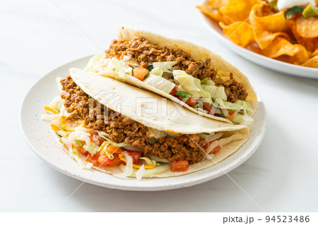 Colorful Ingredients and Delicious Tacos Arranged for a Festive Mexican Meal Preparation