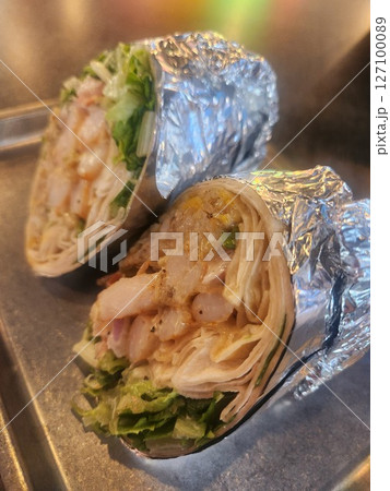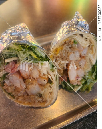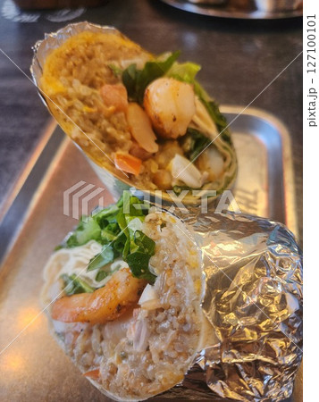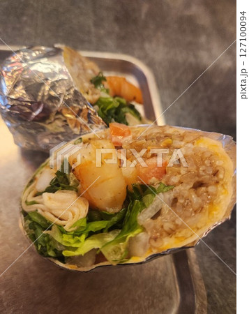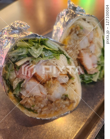 an AI Image Generator, Tasty Beef Burrito with Fresh Vegetables