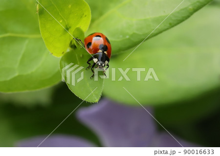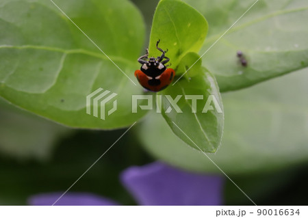 春天日本田野上棲息的七葉瓢蟲