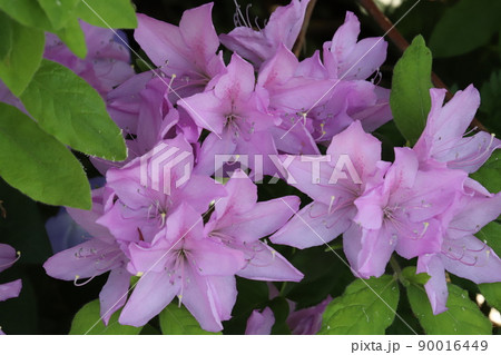 春天日本花園裡盛開的粉紅色杜鵑花