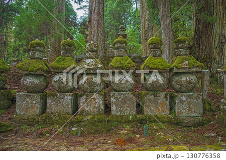 高野山金剛峰寺奧之院參道旁長滿青苔的石塔