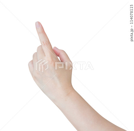 female hand touching or pointing to something isolated on white background