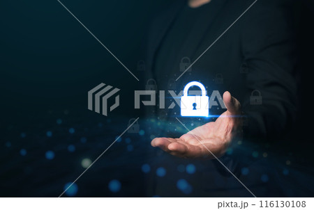 Businessman holding the lock key about cyber security concept.