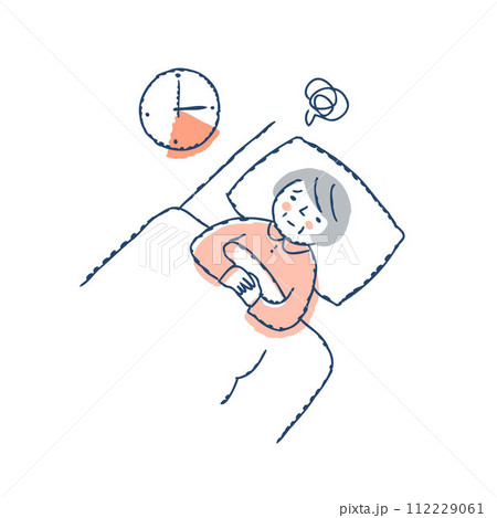 插圖描繪了一個男人半夜醒來後無法入睡(睡眠障礙、失眠、壓力)