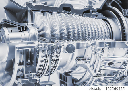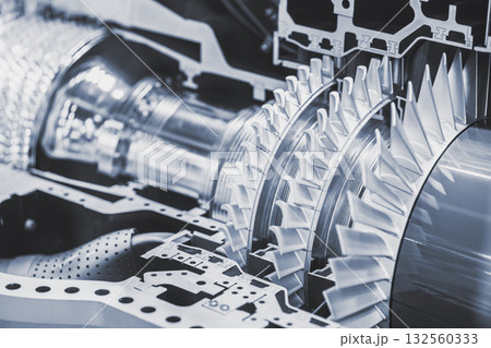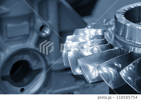 Close up scene gas turbine blade in the light blue scene.