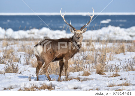 Nosuke半島Ezo鹿與Kunigo海島的在背景中