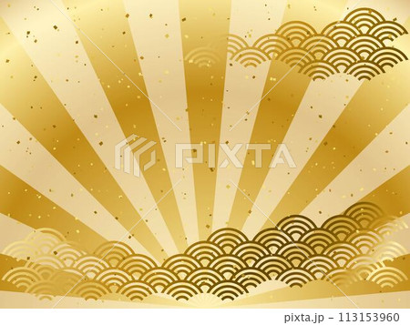 充滿活力的波浪和金色的日式圖案,新年背景,日式風格