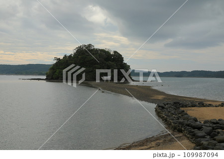 長崎縣壹岐市退潮時,兒島神社所在的島嶼