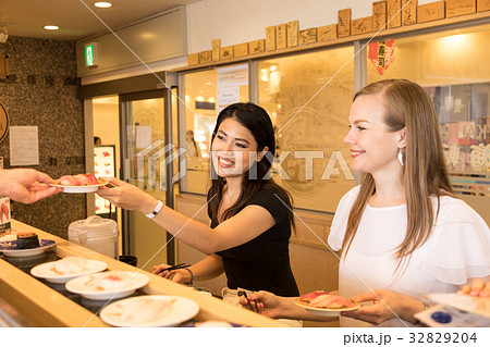 旅遊家庭和圖標集在日本東京享受美食觀光