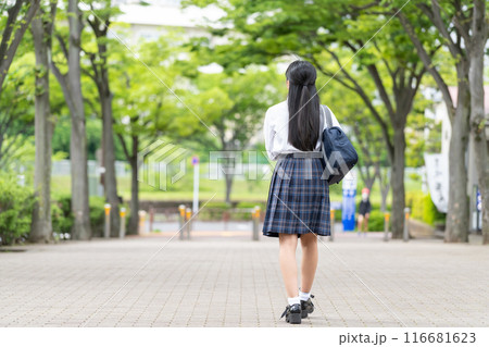 身穿水手服的女高中生擦汗,擔心中暑(夏天)