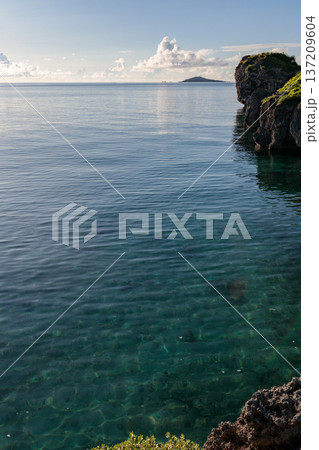 沖繩平靜的海面、清澈的海水和岩石海岸線