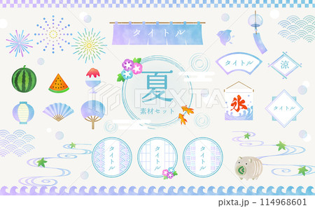 夏季手寫風格日式素材套裝