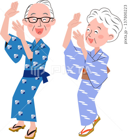 一對老年夫婦穿著浴衣(日本傳統夏季和服)跳舞。