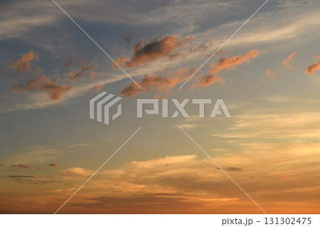 Beautiful sunset sky over land with glowing clouds.