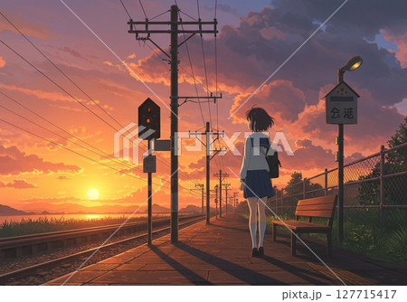 日落的天空,有排列的輸電塔和薄雲 A-1