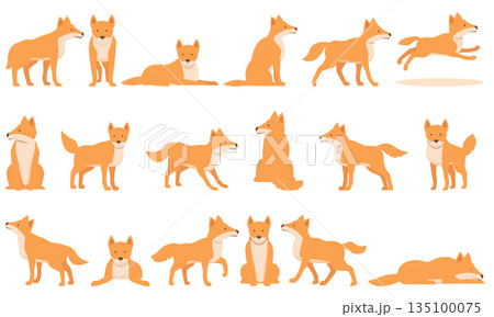 Wild dog dingo icons set cartoon vector. America pup