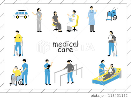 急救和傷害預防插圖集(繃帶、創可貼、降溫、補水)