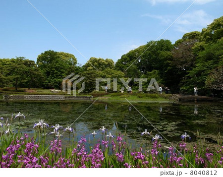 初夏的皇居東禦苑二之丸庭園的鳶尾花開始綻放