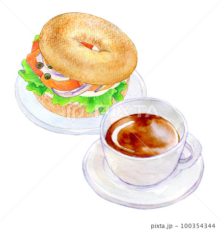 咖啡和百吉餅水彩插圖