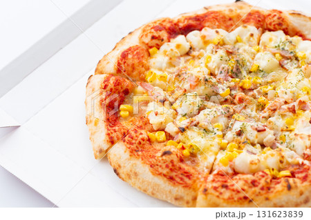 從鳥瞰視角拍攝的瑪格麗特(Margherita)是那不勒斯披薩之一(白色背景)