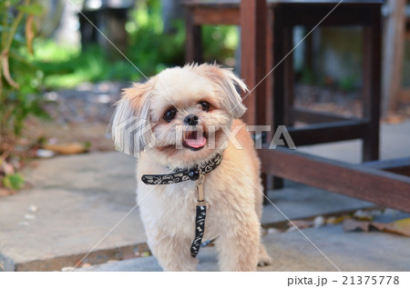 Cute small American Staffordshire Terrier puppy playing outdoors