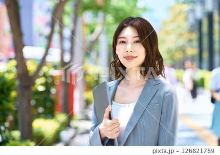 Woman Shopping Outdoor Talking Mobile Phone Concept