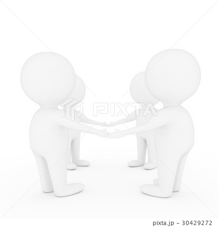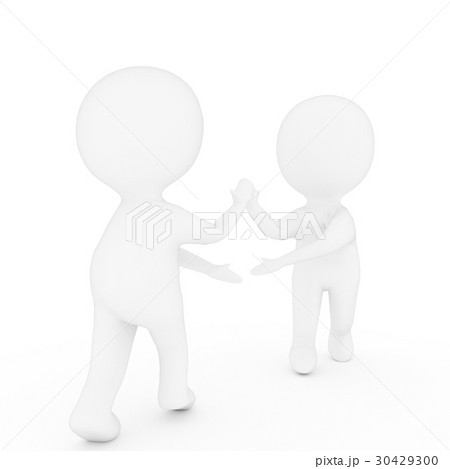 small two people who shake hands on isolated white