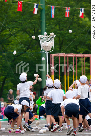 孩子們在運動會上放置球
