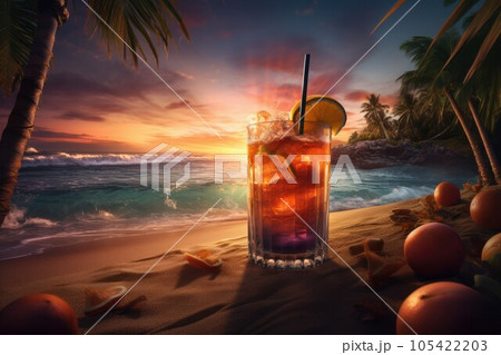 Beach cocktail ocean. Mexico drink celebration. Generate AI