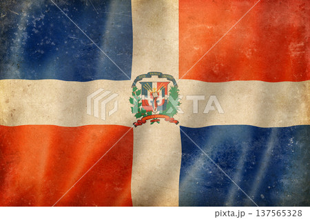 Old vintage flag of Dominican Republic, worn and stained