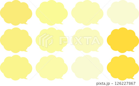 一組黃色、橙色和膚色的氣泡。雲的形狀。對話泡泡的尖端位於右下角