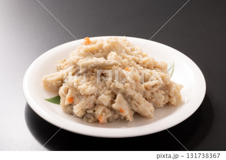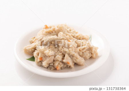 直接放在白色背景上的紅紫蘇和醃李子的照片