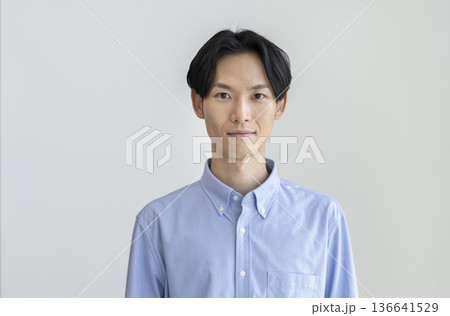 一個 20 多歲的男人對著鏡頭微笑的男士美女形象肖像