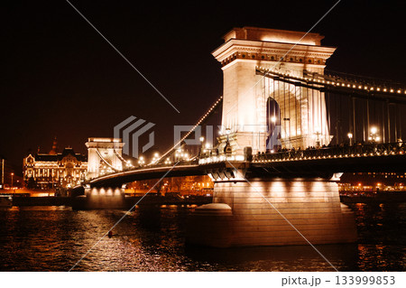 Szechenyi Chain Bridge on the Danube river in Budapest, Hungary