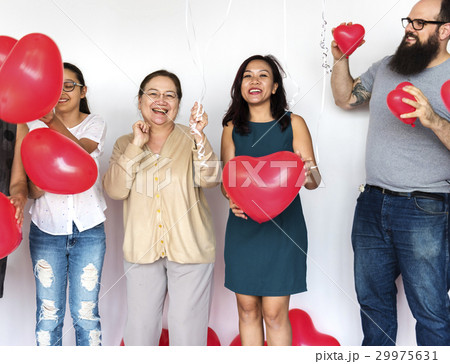 Group of Diverse People Holding Heart Balloons Cheerful