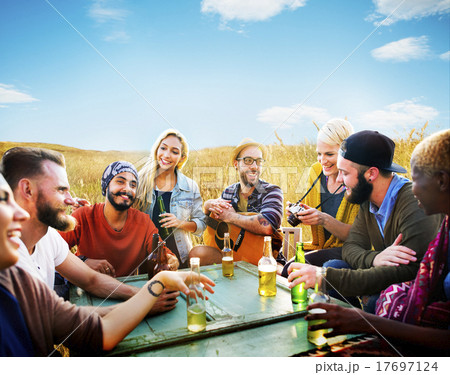 Friends Outdoors Vacation Dining Hanging out Concept