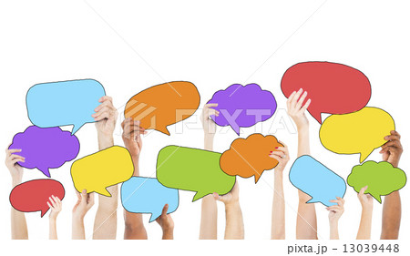 Multi-Ethnic Group of Hands Holding Speech Bubbles