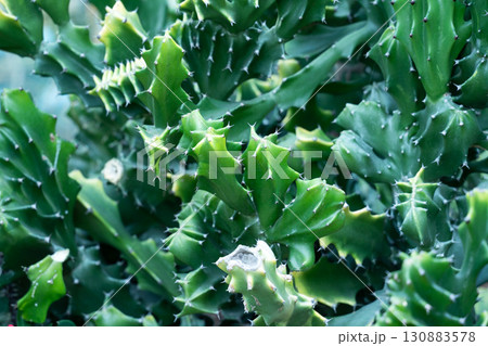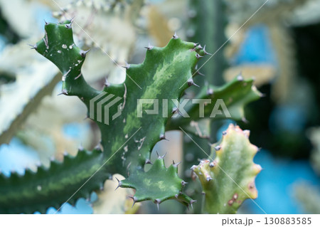 一種奇形怪狀的仙人掌,有許多白色的刺從複雜的莖突起中伸出。