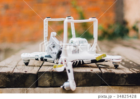 Crashed drone on the ground