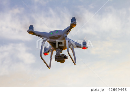 Drone pilotage on the sky at sunset.