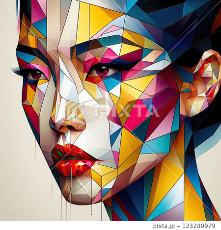 Futuristic Abstract Portrait Woman with Vibrant Geometric and Digital Art Elements with Generative AI.