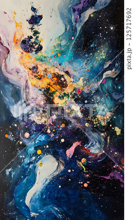 Swirling galaxy with dynamic star clusters and vibrant cosmic colors