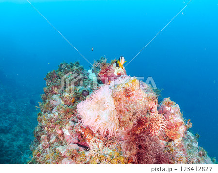 美麗的紅姬路、蓬萊姬路(棘科)等群。 靜岡縣伊豆半島加茂郡南伊豆町中木埼浜