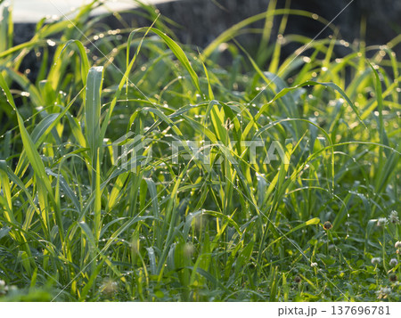 被晨露打濕的草地風光