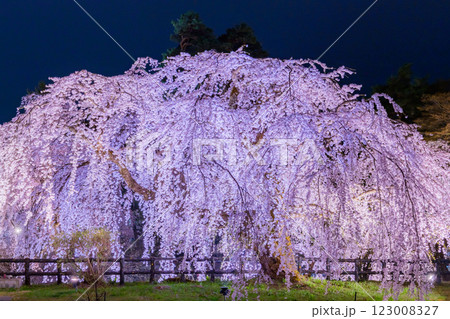 新倉山淺間公園的夜景、燈火通明的櫻花和忠實塔【山梨縣富士吉田市】