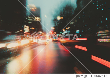 夜幕降臨,奇幻的光跡遍佈城市,抽象藝術背景素材